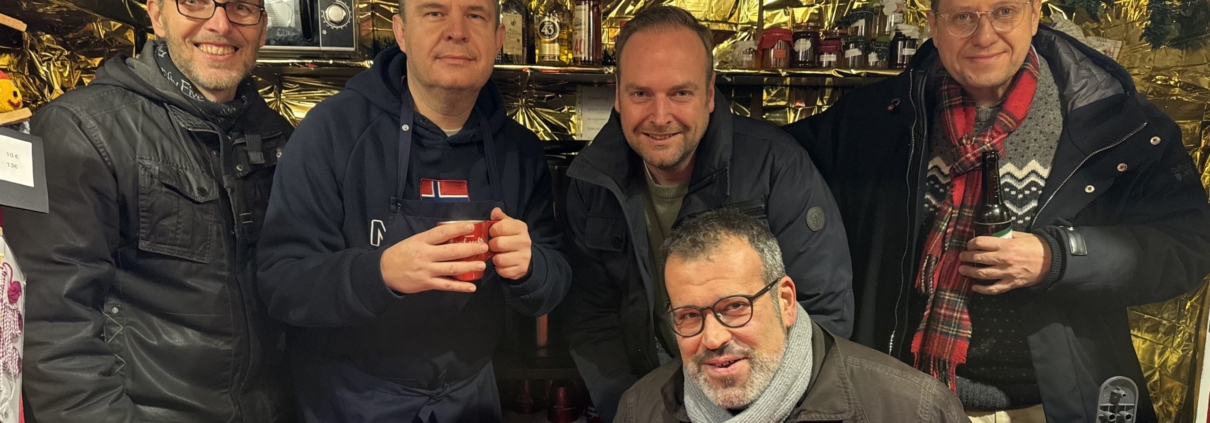 Da das Karolinenheim stets Ehrenamtliche benötigt, um die Bude auf dem Lagenser Weihnachtsmarkt zu beschicken, hat sich die Herren40-Mannschaft vom Tennis Club Rot-Weiß Lage zum Einsatz gemeldet.